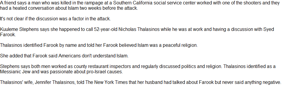 // "..they had a heated conversation about Islam two weeks before the attack." //