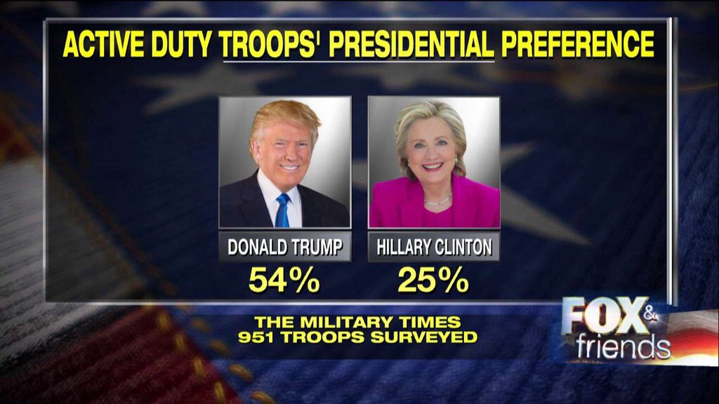 New poll shows Trump with YUGE support among our active duty troops: Trump 54% Hillary 25%