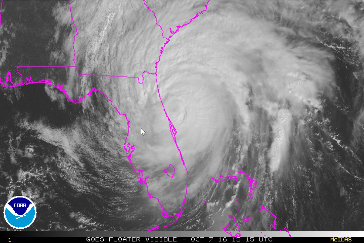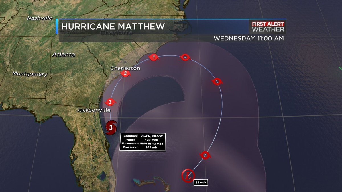 - Category 3 Hurricane #Matthew with 120mph winds skirting the FL coastline. Strongest winds just offshore for now, watching track closely.