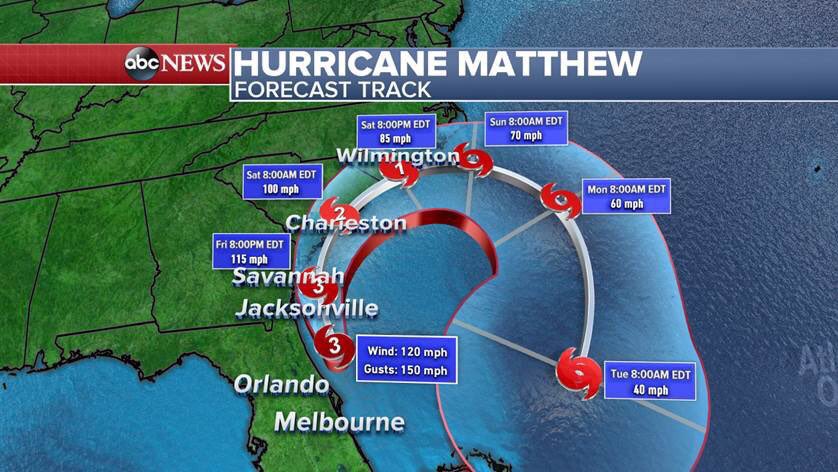 - Winds from #Matthew's eyewall are battering parts of the FL coast. Here's the latest track...