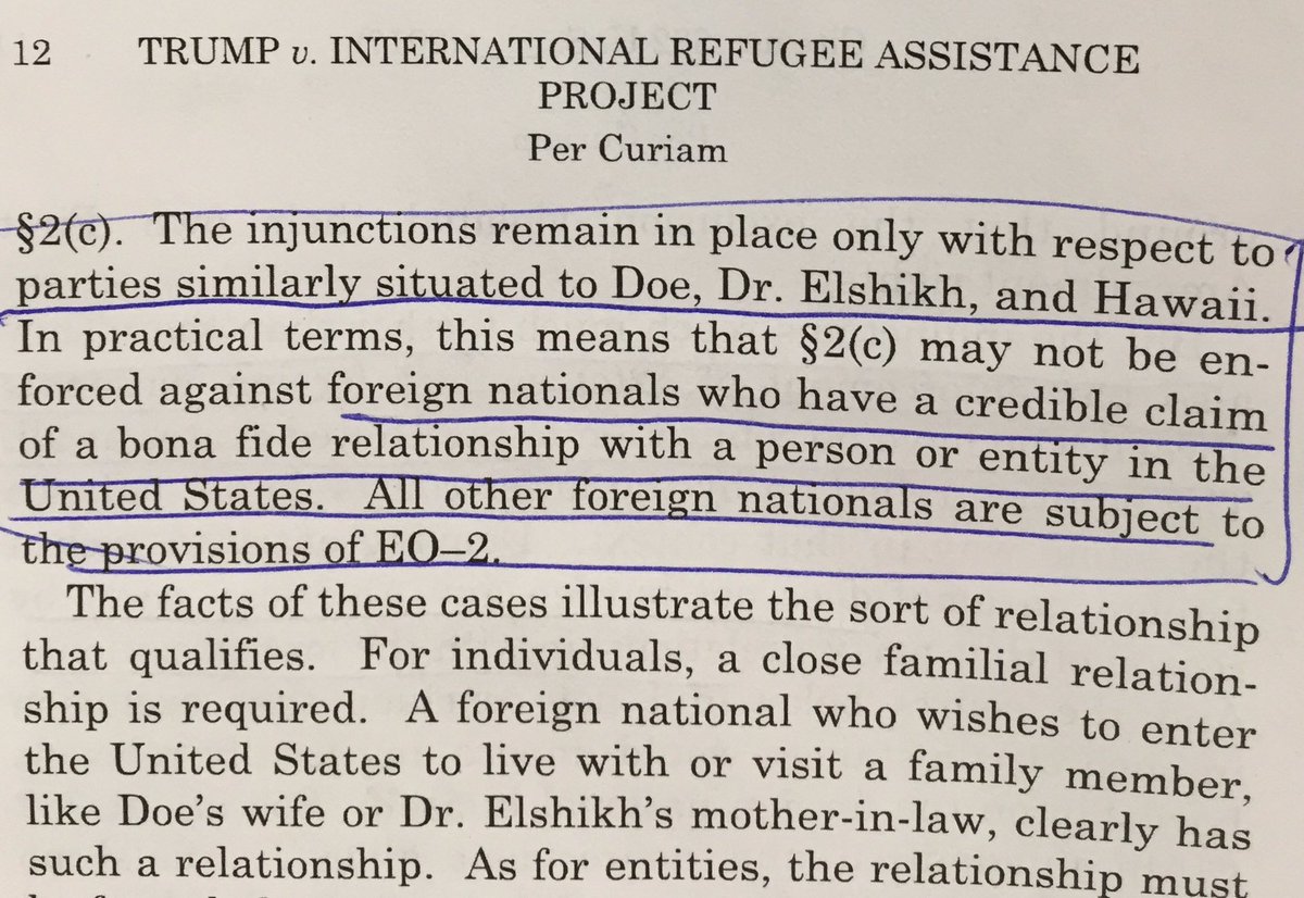 - KEY to SCOTUS travel ban ruling - its back in force against "all foreign nationals" who lack credible claim to a link to US person or entity